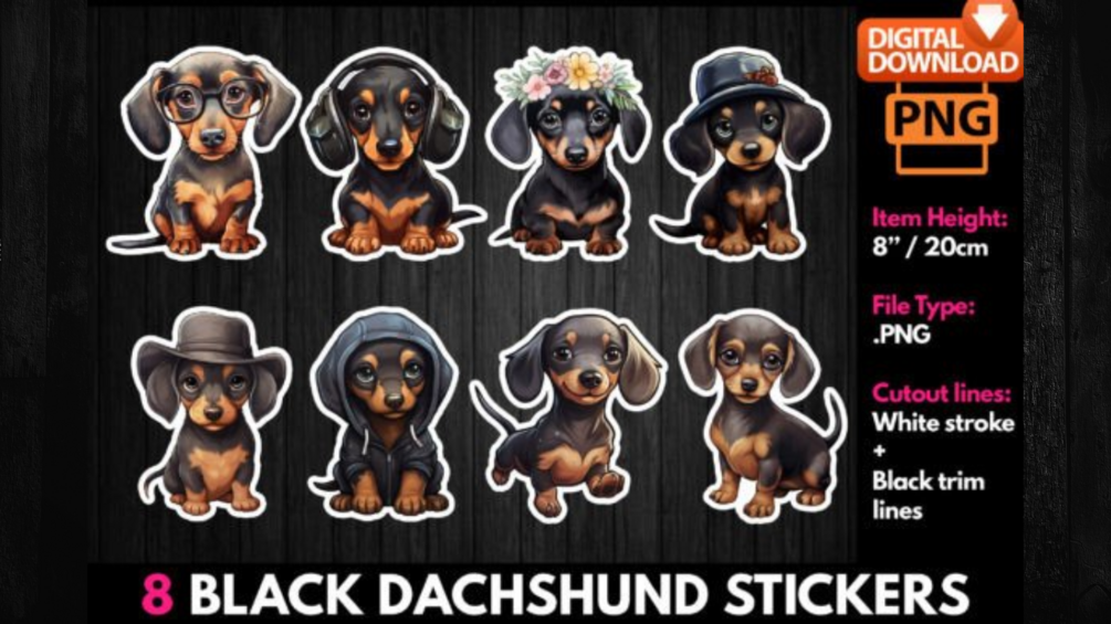 Discover the world of Black Dachshund Dog Stickers, a versatile addition to your creative toolkit. Designed for various surfaces, these stickers capture the essence of Black Dachshunds, providing a unique touch to your projects. Immerse yourself in their world and explore creative possibilities with Black Dachshund Dog Stickers as your companions.